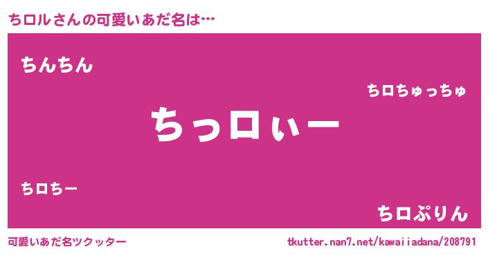 | 女子向けラノベタイトル風あだ名 | 『ちロルの卵を拾いまして』 |