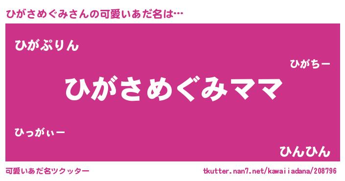 | 女子向けラノベタイトル風あだ名 | 『異世界で失敗しない100のひがさめぐみ』 |