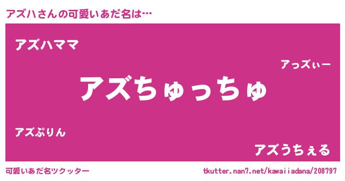 | 女子向けラノベタイトル風あだ名 | 『アズハ恋絵巻』『アズハの契約王妃』 |
