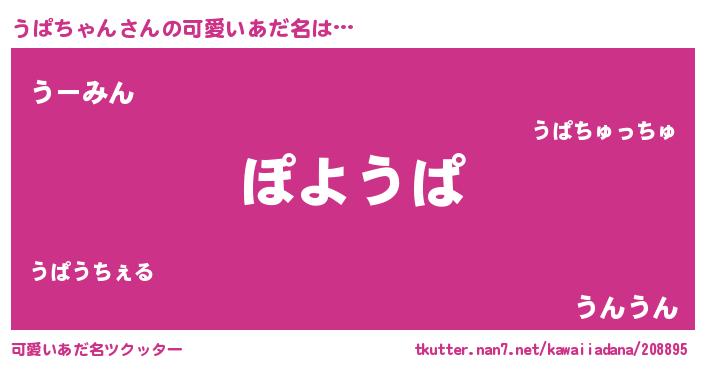 | 恥ずかしいあだ名 | 『プリティーうぱちゃん』『うぱっちょ』 |