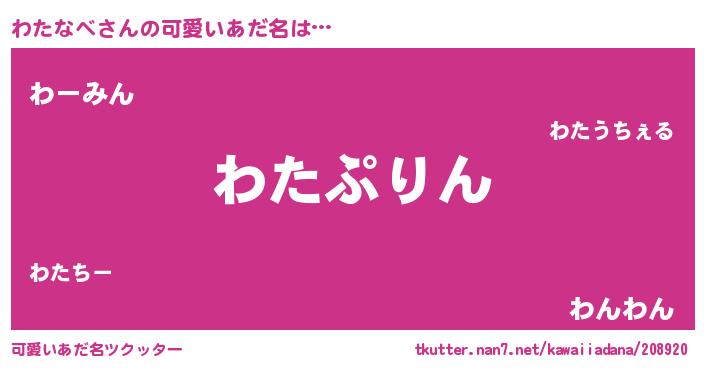 | ヒーロー風カッコイイあだ名 | 『スーパーワタナベ』『仮面ワタダー』 |