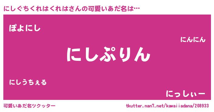 | 意味不明あだ名 | 『めかぶ科にしぐちくれはくれは属』 |
