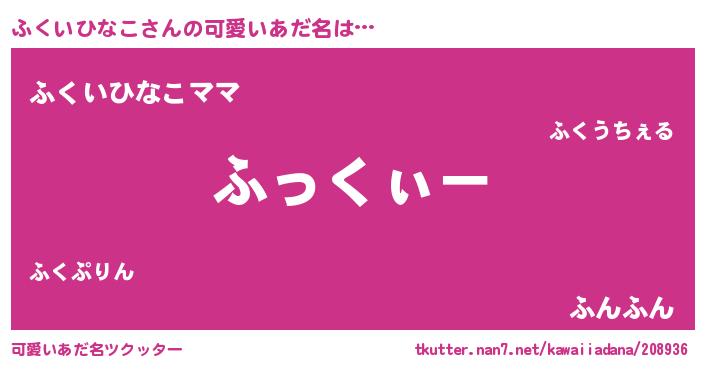 | ポケモン風あだ名 | 『ヒフクイヒナコ』『ゼニフク』 |