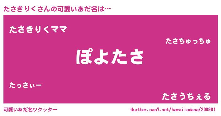 | ヘコむあだ名 | 『たさきりく(笑)』『たさぷりん』 |
