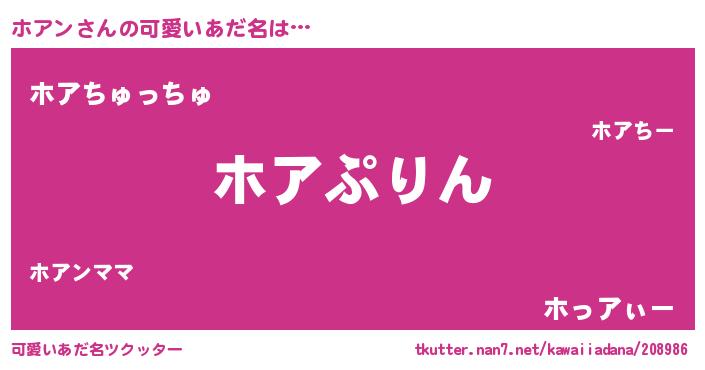 | ヘコむあだ名 | 『ホアお』『酢こんぶ』『ホアにゅー』 |