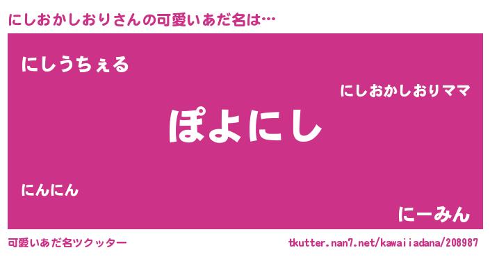 | ヘコむあだ名 | 『にしおかしおり(遠い目)』『にしにゅー』 |
