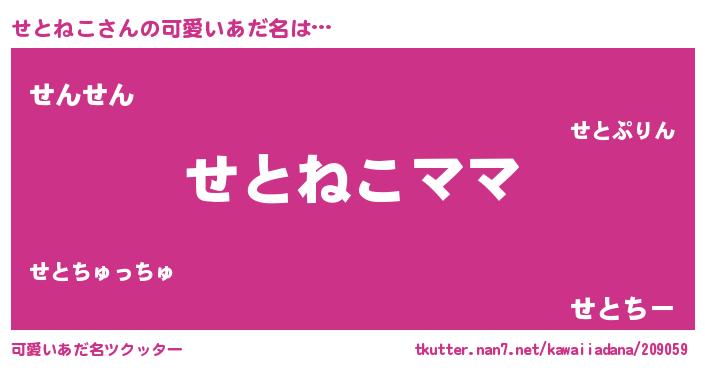 | 恥ずかしいあだ名 | 『せとちん』『プリティーせとねこ』 |