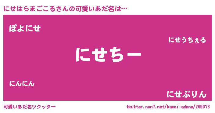 | ヘコむあだ名 | 『なまこ酢』『にせにー』『にせお』 |