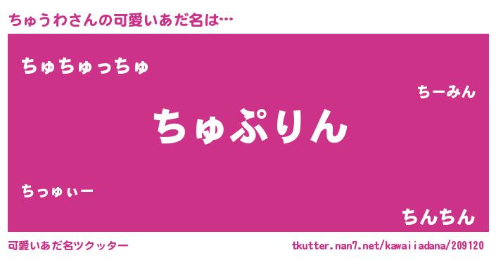 | 男性向けラノベタイトル風あだ名 | 『ちゅうわに滅ぼされるだけの簡単なお仕事です』 |