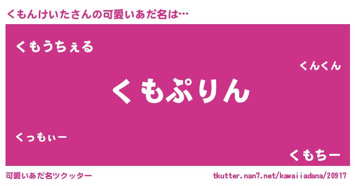 | 男性向けラノベタイトル風あだ名 | 『くもんけいた~年齢イコール彼女いない歴の魔法使い~』 |