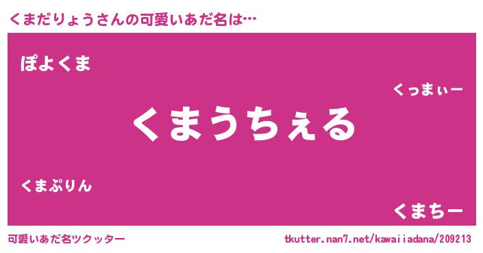 | 意味不明あだ名 | 『自称くまだりょう』 |