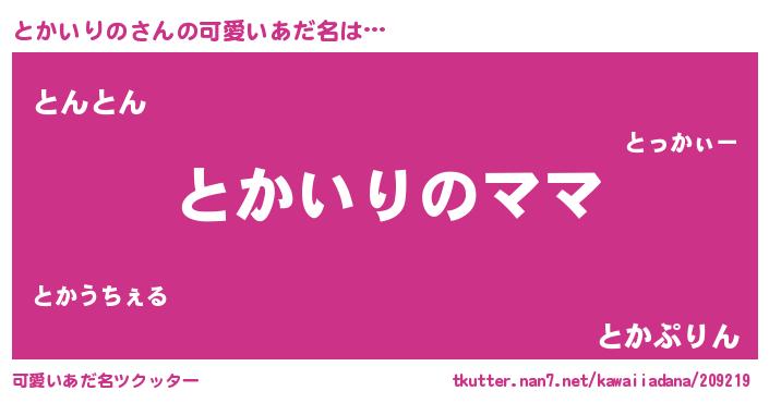 | ヘコむあだ名 | 『とかいりの(笑)』『とかっふぃ~』 |