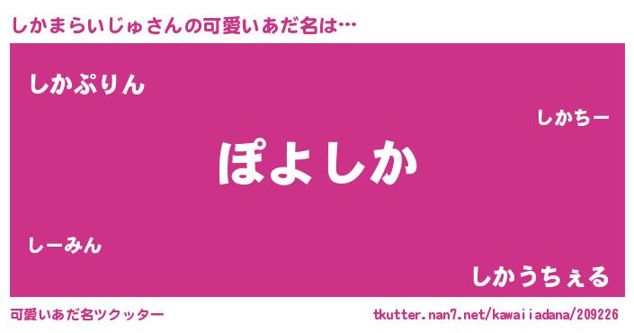 | ヘコむあだ名 | 『酢こんぶ』『しかまらいじゅ(遠い目)』 |
