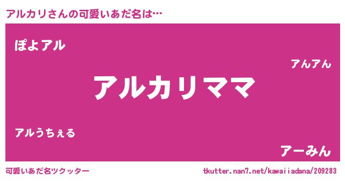 | 意味不明あだ名 | 『永久保存アルカリ』『ペロリンアルカリ』 |
