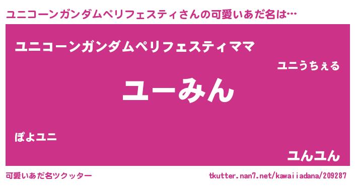 | ヘコむあだ名 | 『ユニコーンガンダムペリフェスティ(震え声)』 |