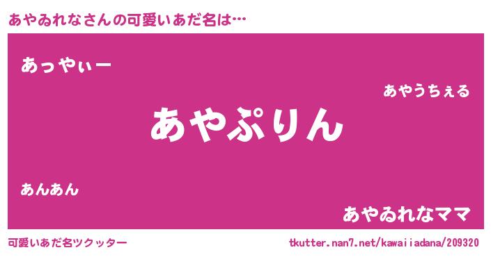 | ヘコむあだ名 | 『あやっ子』『あやゐれな(笑)』 |