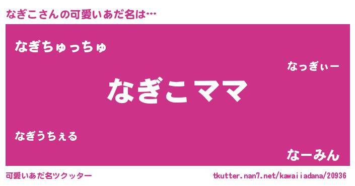 | 女子向けラノベタイトル風あだ名 | 『なぎこの契約王妃』『なぎこ様がみてる』 |
