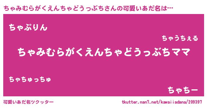 | ヘコむあだ名 | 『ちゃみむらがくえんちゃどうっぶち(笑)』 |