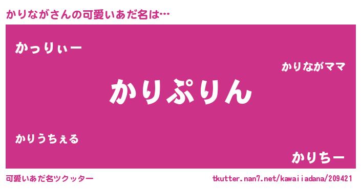 | ヘコむあだ名 | 『かりっぺ』『牛乳』『かりなが(笑)』 |