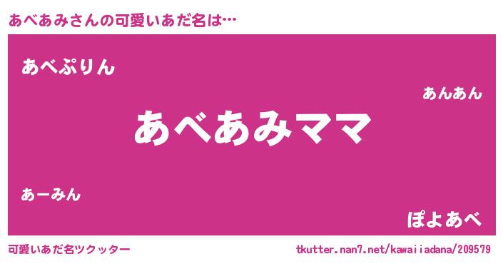 | 意味不明あだ名 | 『永久保存あべあみ』『ペロリンあべあみ』 |
