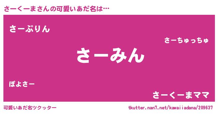 | 料理風あだ名 | 『さーくーまの炊き込みご飯』 |