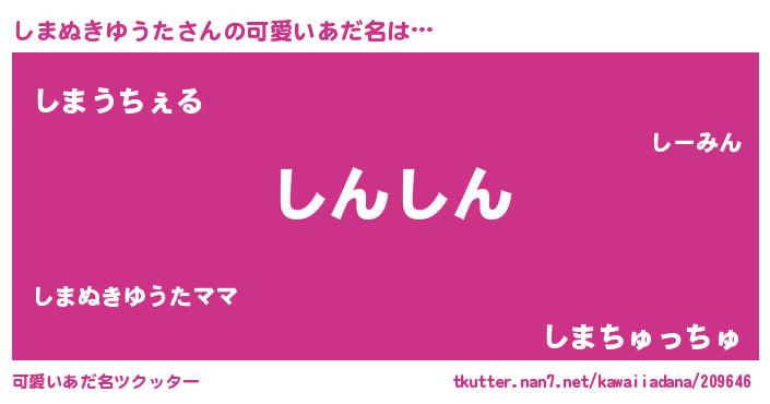 | 恥ずかしいあだ名 | 『プリティーしまぬきゆうた』『しまちん』 |