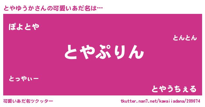 | ヒーロー風カッコイイあだ名 | 『仮面トヤダー』『最強戦士トヤユウカ』 |