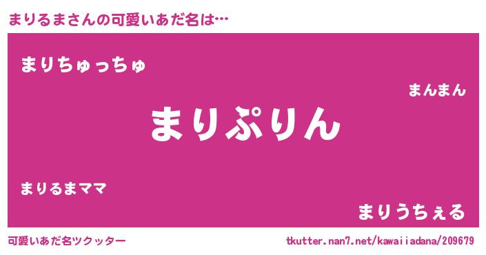 | ヘコむあだ名 | 『まりもー』『まりるま(笑)』 |