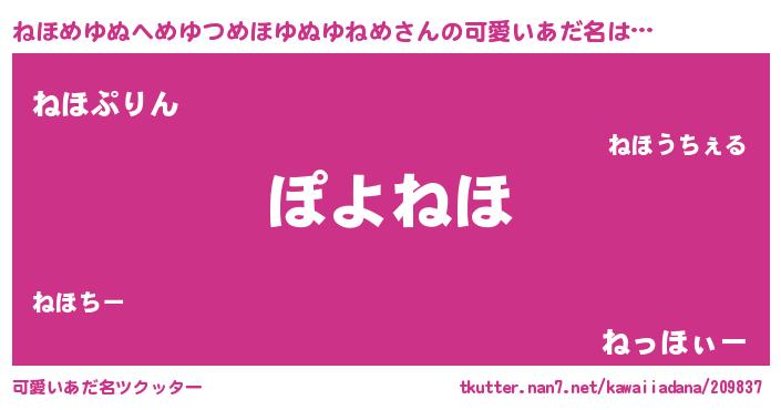 | 欧米人風あだ名 | 『ダレノガレねほめゆぬへめゆつめほゆぬゆねめ』 |