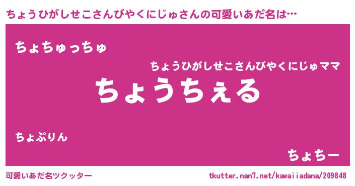 | 意味不明あだ名 | 『自称ちょうひがしせこさんびやくにじゅ』 |