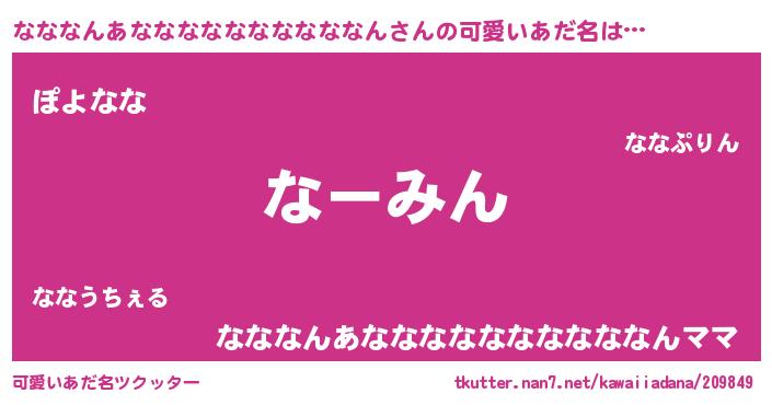 | 意味不明あだ名 | 『住所不定無職なななんあななななななななななん(1歳)』 |