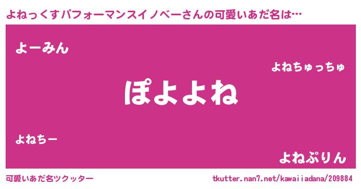 | 女子向けラノベタイトル風あだ名 | 『よねっくすパフォーマンスイノベーが死なない童話 林檎のよねっくすパフォーマンスイノベーの診療簿』 |