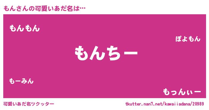 | 女子向けラノベタイトル風あだ名 | 『もん伯爵の花嫁』『もんは平凡を望む』 |