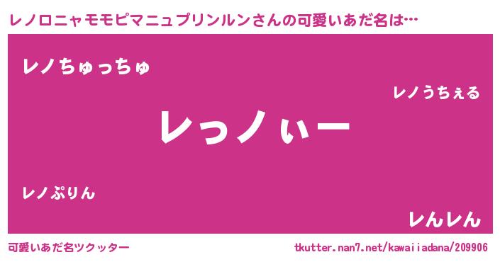 | 意味不明あだ名 | 『とにかく怪しいレノロニャモモピマニュプリンルン』 |