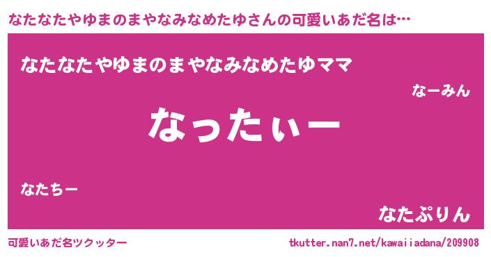 | 女子向けラノベタイトル風あだ名 | 『なたなたやゆまのまやなみなめたゆは平凡を望む』 |