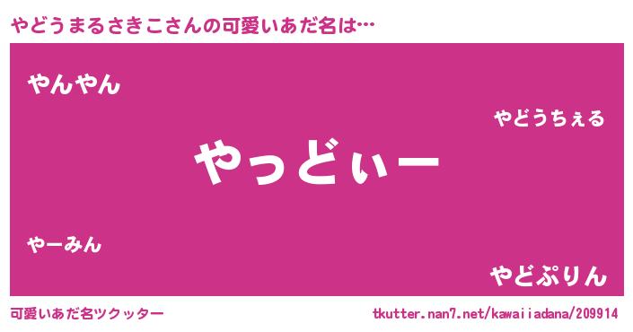 | 意味不明あだ名 | 『とにかく怪しいやどうまるさきこ』 |