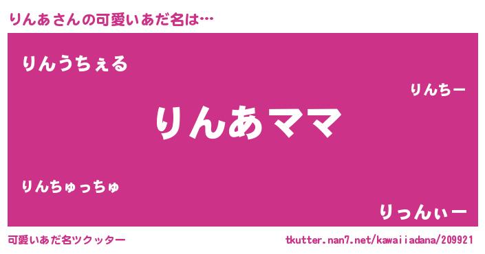 | 意味不明あだ名 | 『永久保存りんあ』『自称りんあ』 |