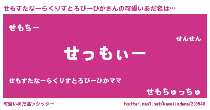 | 意味不明あだ名 | 『とにかく怪しいせもすたなーらくりすとろびーひか』 |