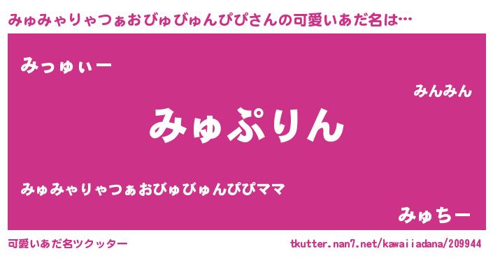 | 胡散臭い通販商品みたいなあだ名 | 『伝統あるサプリメント…その名も「みゅみゃりゃつぁおびゅびゅんぴぴ」』 |