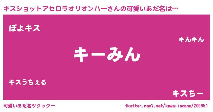 | 欧米人風あだ名 | 『キスショットアセロラオリオンハー・ステッグマイヤー』 |