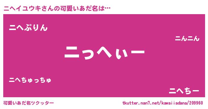 | ポケモン風あだ名 | 『ヒニヘイユウキ』『ニヘキング』 |