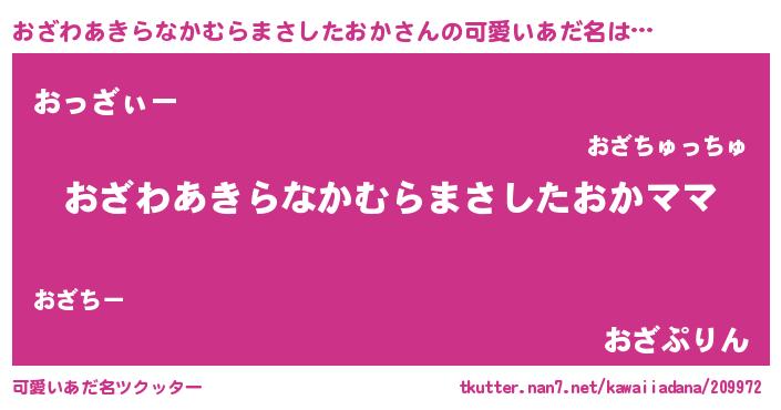 | 意味不明あだ名 | 『永久保存おざわあきらなかむらまさしたおか』 |