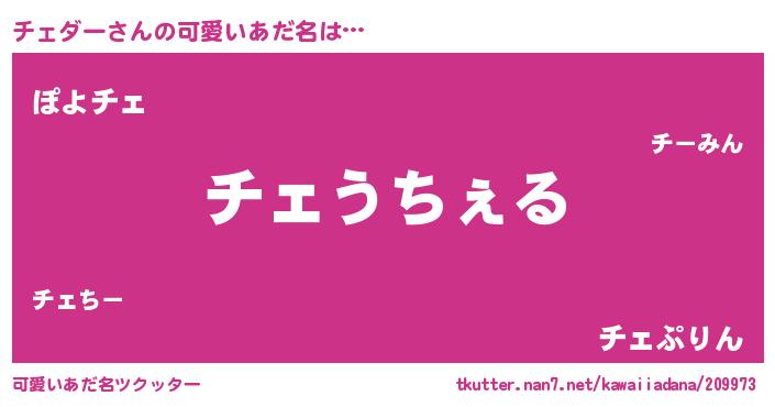 | 女子向けラノベタイトル風あだ名 | 『チェダーなんてお断りですっ。』 |