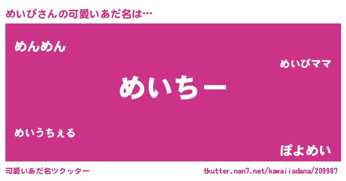| 恥ずかしいあだ名 | 『めいっちょ』『プリティーめいぴ』 |