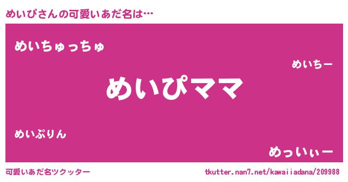 | ヘコむあだ名 | 『めいぴ(遠い目)』『めいっ子』 |
