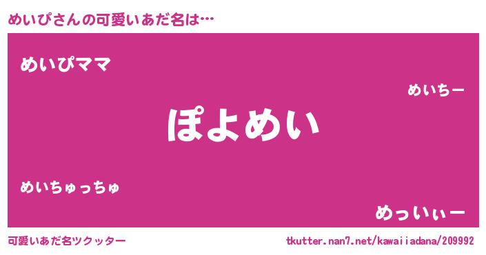 | ヘコむあだ名 | 『めいぴ(小並感)』『めいっ子』 |