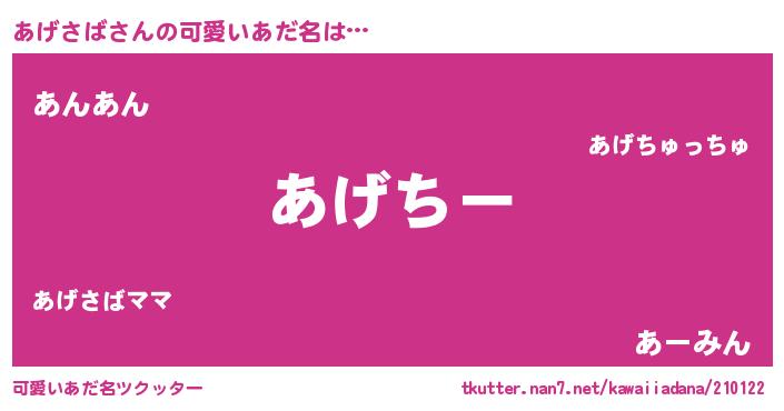 | ポケモン風あだ名 | 『アゲサダネ』『アゲチュウ』 |