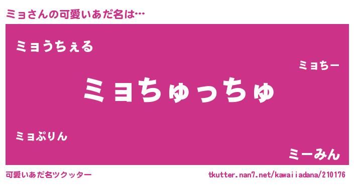 | ヒーロー風カッコイイあだ名 | 『慈愛の使者ミョ』『究極戦士ミョ』 |