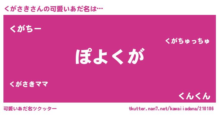 | 恥ずかしいあだ名 | 『くがっちょ』『プリティーくがさき』 |