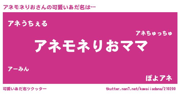 | 意味不明あだ名 | 『永久保存アネモネりお』 |